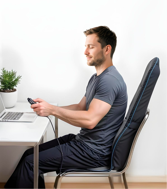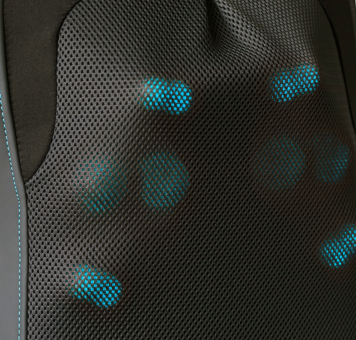 Ролики мягко нагреваются, улучшая кровообращение и расслабление мышц.